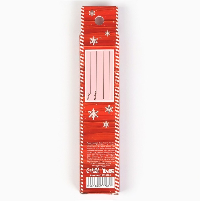 Ручка гелевая «Новый год: Почта Счастья», 2 шт., синяя и красная паста