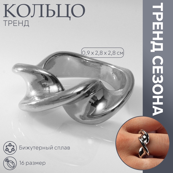 Кольцо металл «Тренд» перекрученное, цвет серебро, размер 16