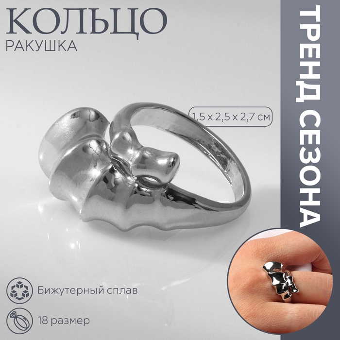Кольцо металл «Ракушка» раковина, цвет серебро, размер 18