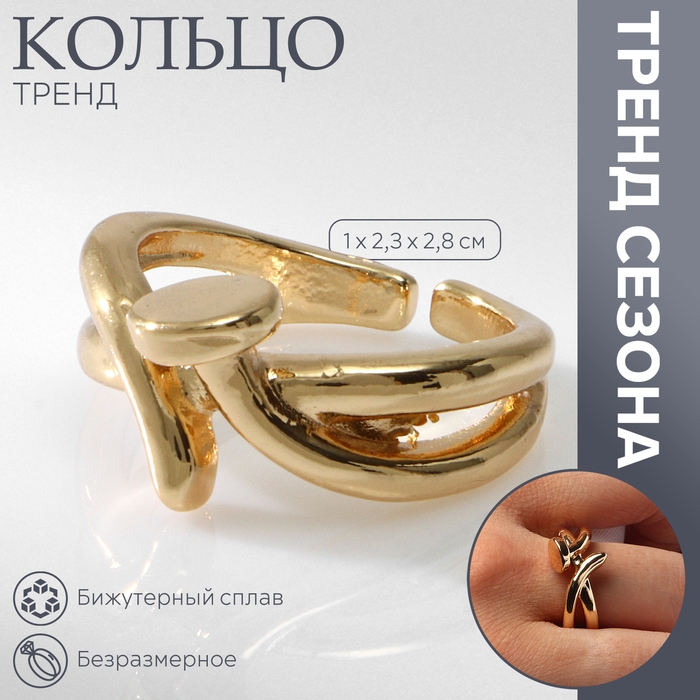 Кольцо «Гладкие линии», цвет золото, безразмерное
