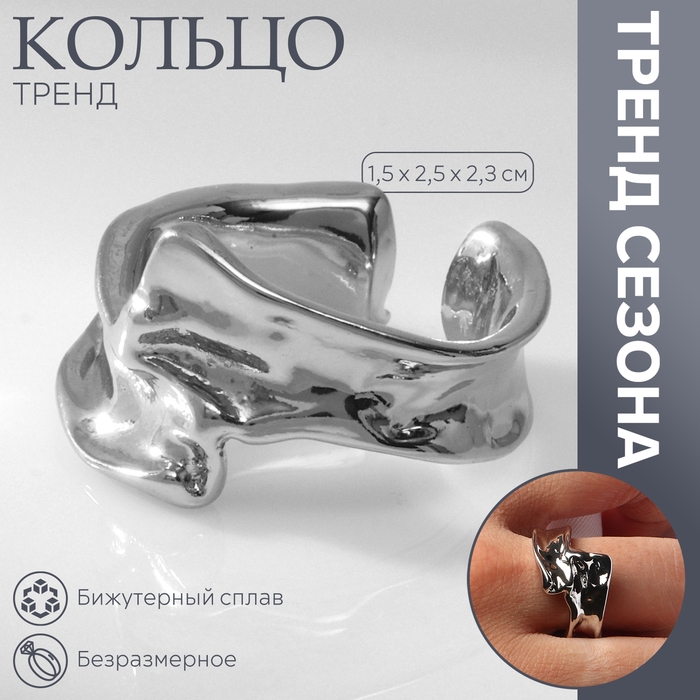 Кольцо металл «Тренд» мятое, широкое, цвет серебро, безразмерное