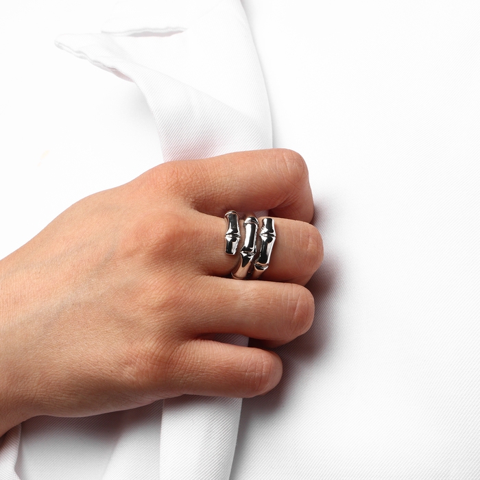 Кольцо металл «Тренд» бамбук, цвет серебро, размер 18