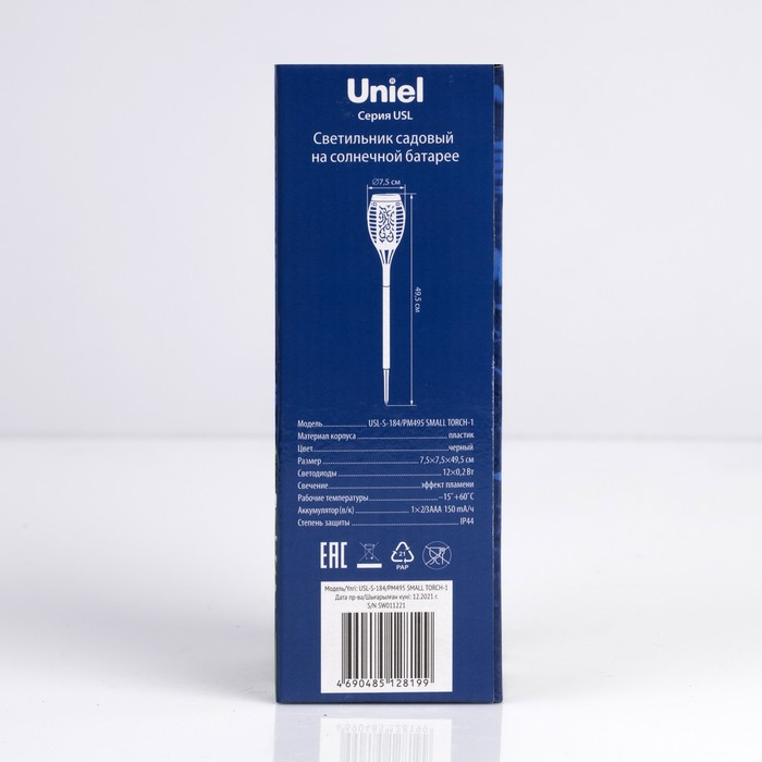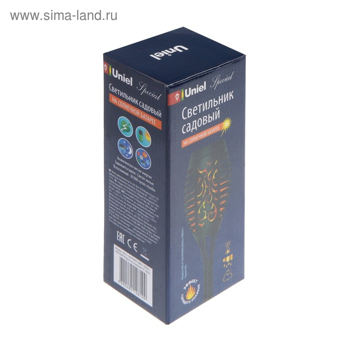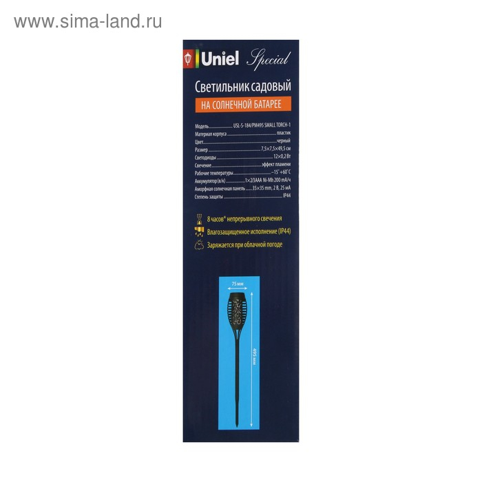 Садовый светильник Uniel на солнечной батарее «Факел», 7.5 × 48 × 7.5 см, эффект пламени