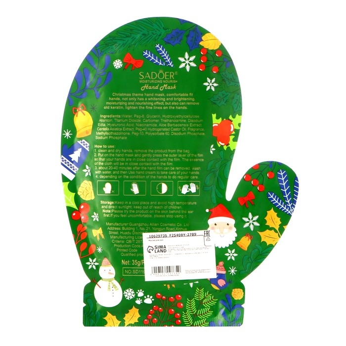 Способ применения: очистите и высушите руки перед применением маски. Затем наденьте маску, слегка надавите на наружный слой пленки, чтобы руки плотно соприкасались с пленкой. Примерно через 20-40 минут вы можете снять маску, промыть руки водой, а затем нанести крем.