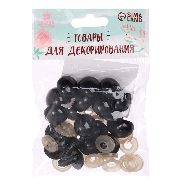 Глаза винтовые с заглушками, набор 20 шт., размер 1 шт. — 1,6 см, цвет чёрный