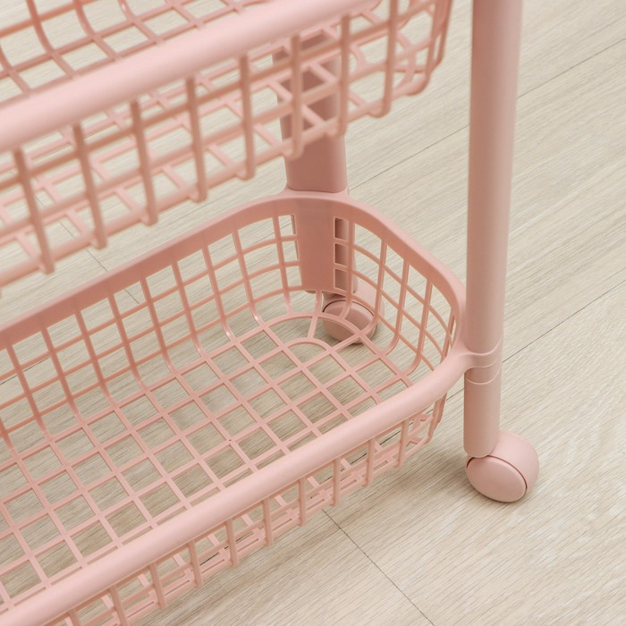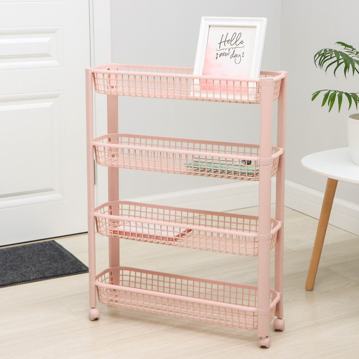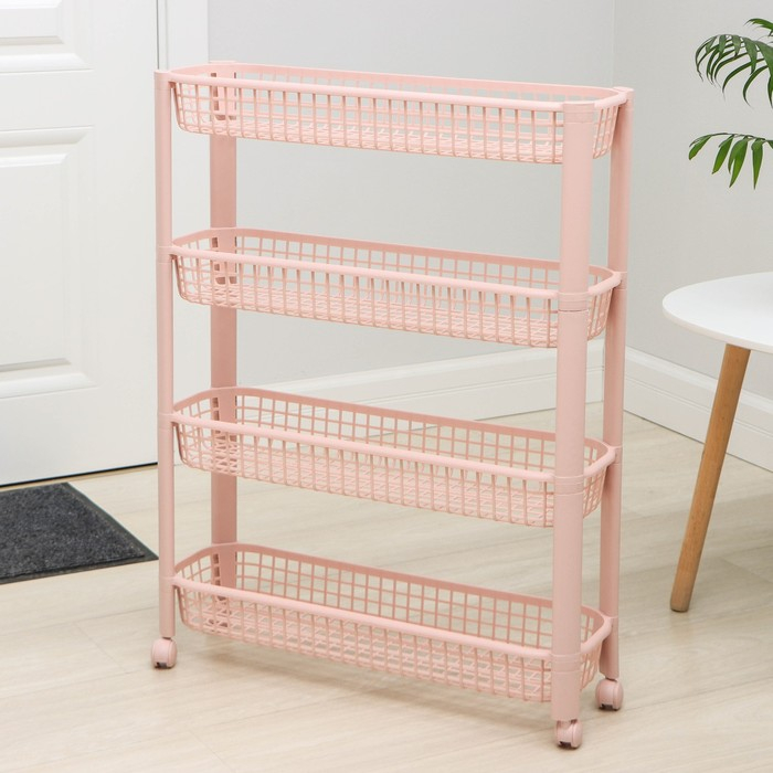Полка напольная узкая 4-х секционная, на колёсиках, цвет чайная роза