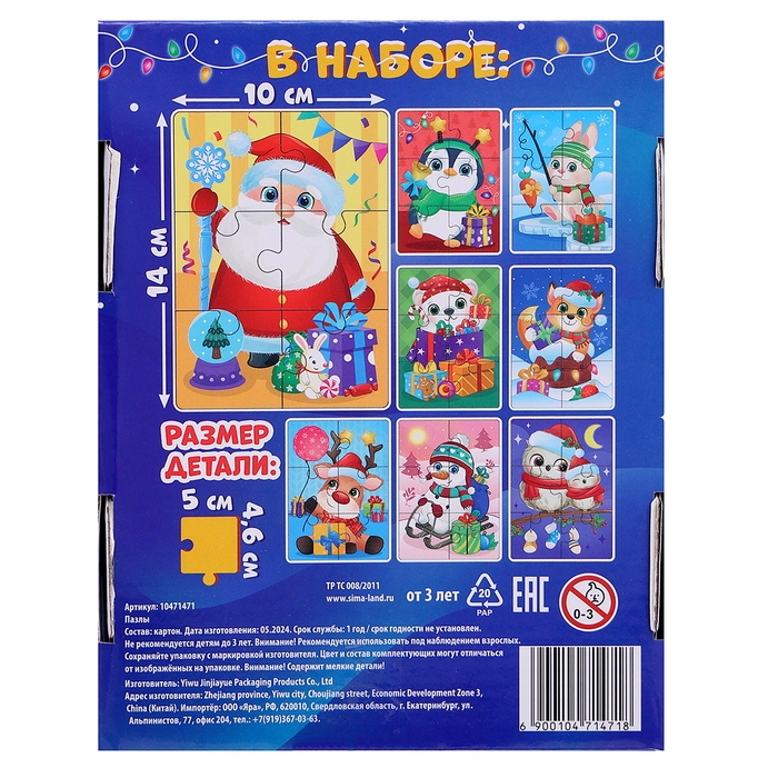 Макси-пазлы 8 в 1 «Ждут зверята Новый год», 48 деталей