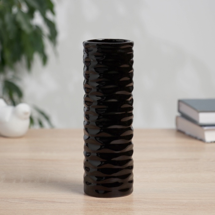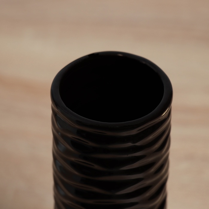Ваза керамика настольная "Тьяго" волны труба, 18х5.5 см, чёрный