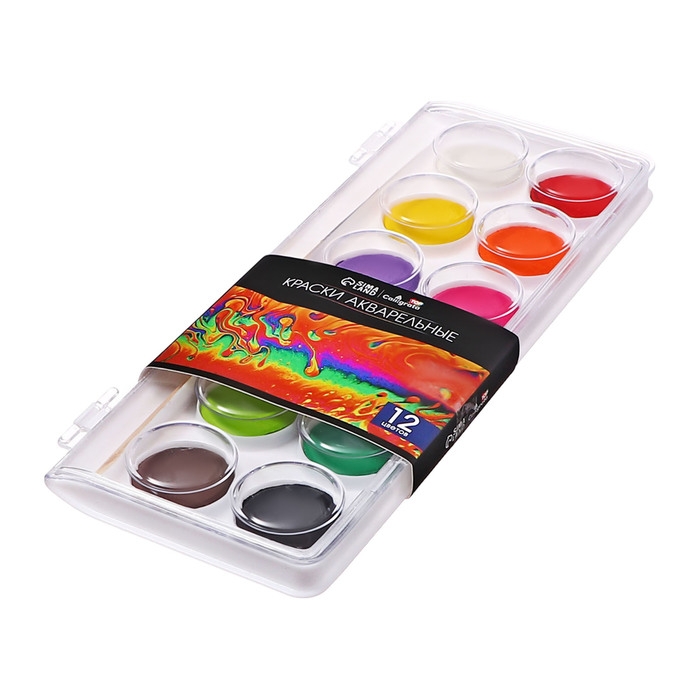 Краски акварельные 12 мл, в металлической тубе, в картонной коробке, 12 цветов