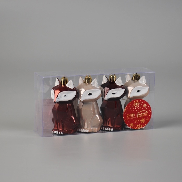 Украшение ёлочное "Сказочный лис" (набор 4 шт) 8,5х3,5 см, бежевый коричневый