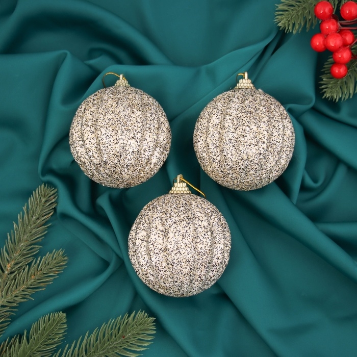 Набор шаров пластик d-8 см, 3 шт "Элаесс" серебро