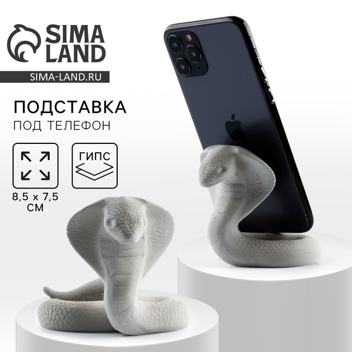 Подставка для телефона новогодний сувенир «Новый год: Кобра», серая, 8,5 х 7,5 см