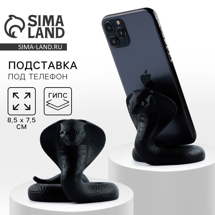 Подставка для телефона новогодний сувенир «Новый год: Кобра», чёрная, 8,5 х 7,5 см