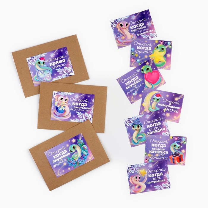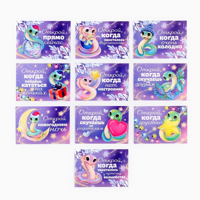 Набор новогодних конвертов «Новый год: Открой, когда...» (Новогодняя змейка), 10шт., 16 х 11,5 см