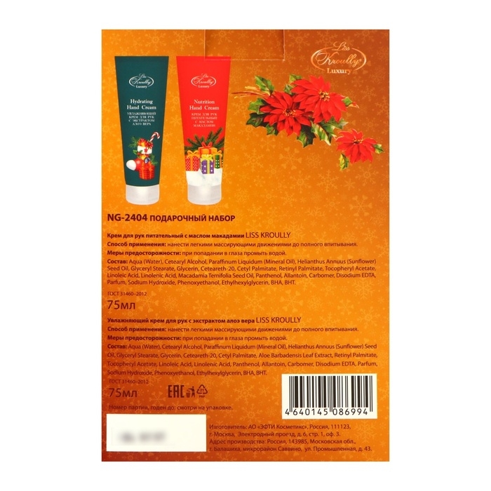 Новый год. Новогодний подарочный набор косметики Liss Kroully "Санта Клаус": крем для рук и ногтей, 75 мл + крем для рук, 75 мл