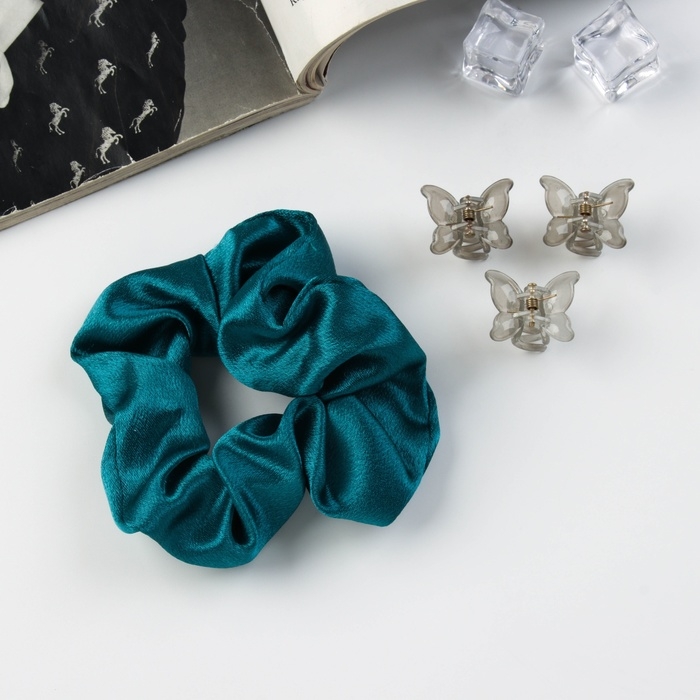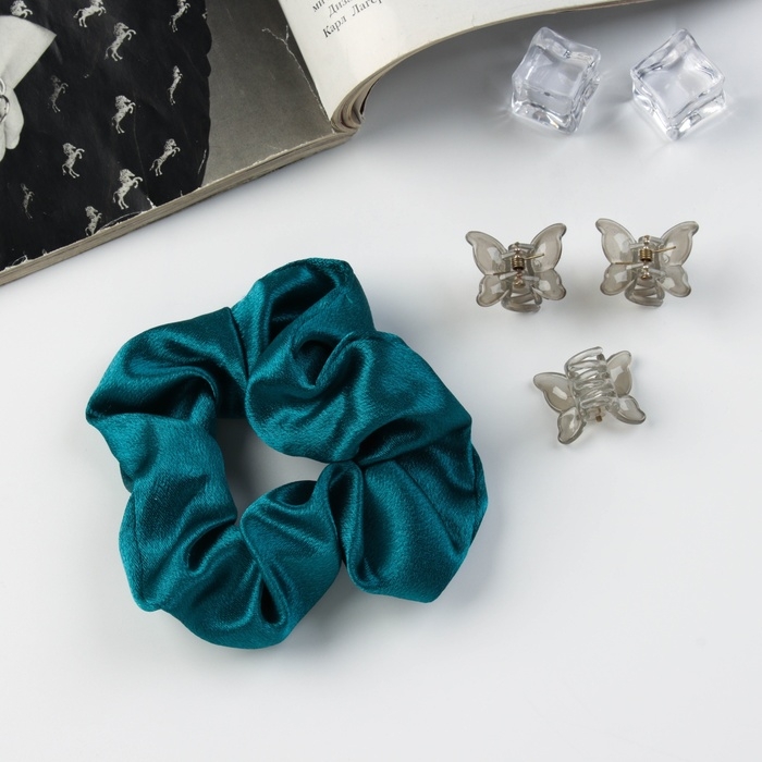 Набор для волос "Джеси" (резинка 7 см, 3 краба 2 см) зелёный