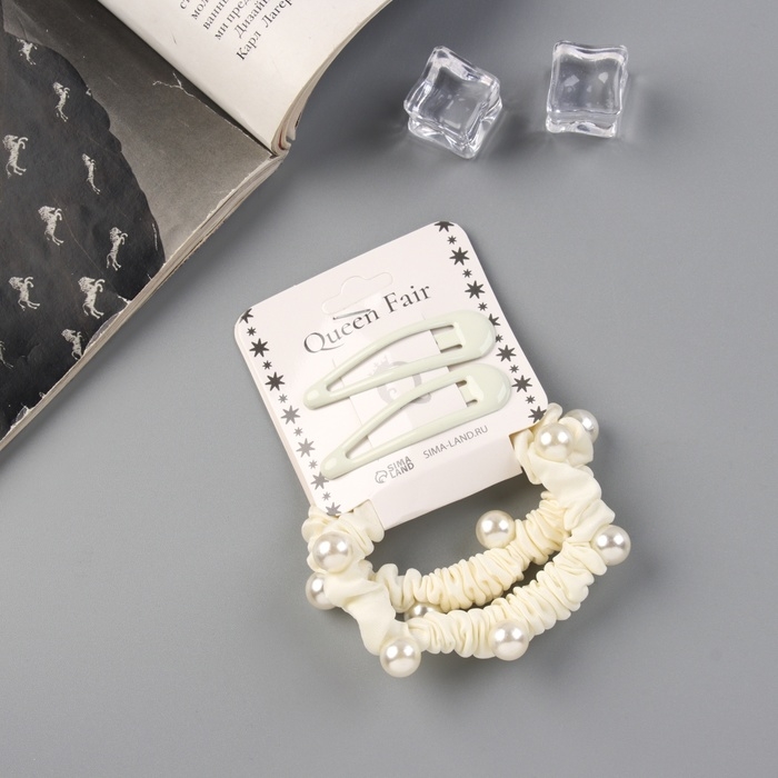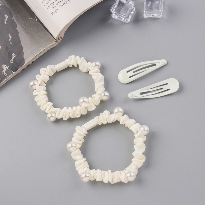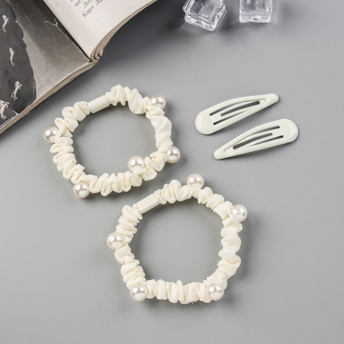 Набор для волос "Глория шик" (2 резинки 5 см, 2 невидимки 5 см) молочный