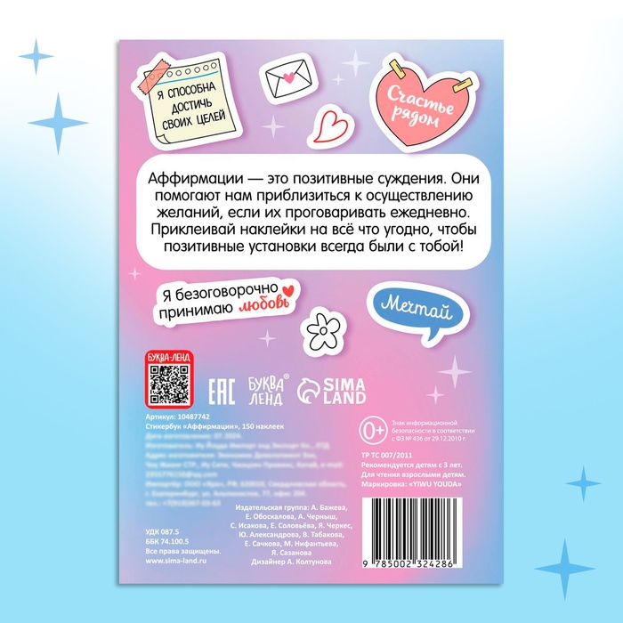 Стикербук «Аффирмации», 150 наклеек