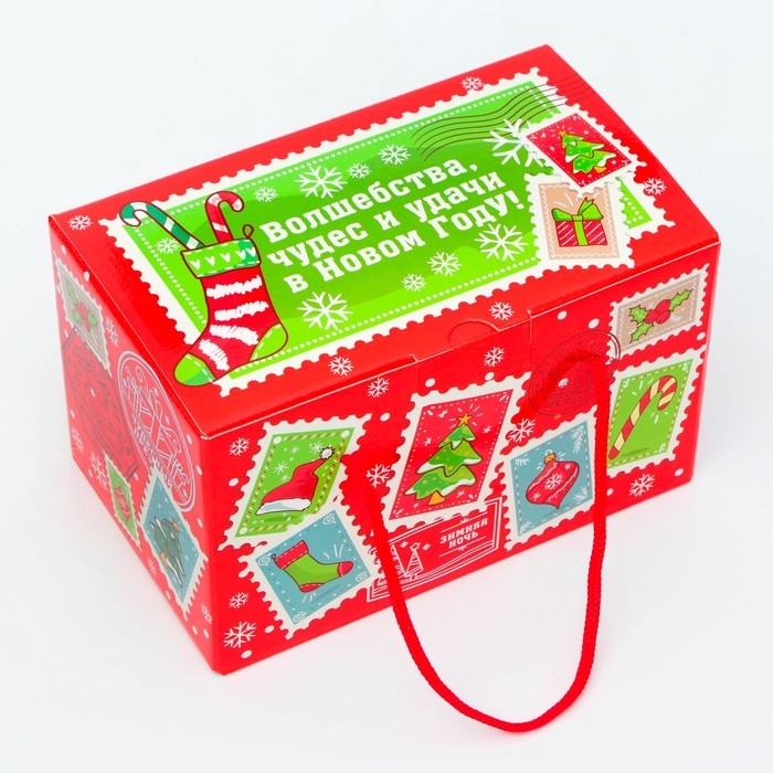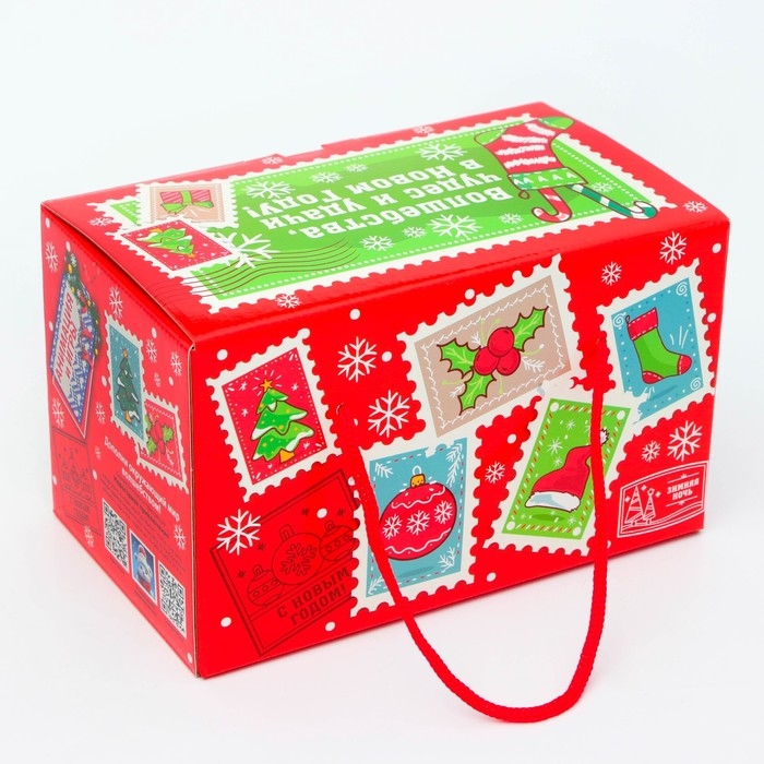 Коробка выполнена из качественных материалов, которые обеспечивают сохранность содержимого. Она имеет яркий и красочный дизайн, который отражает атмосферу Нового года.