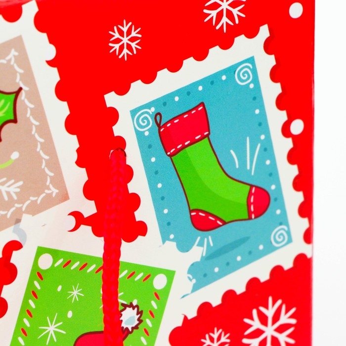 Новый год. Подарочная коробка Новогодняя Посылка "Бандероль" с веревочными ручками с анимацией 20 х 12 см.