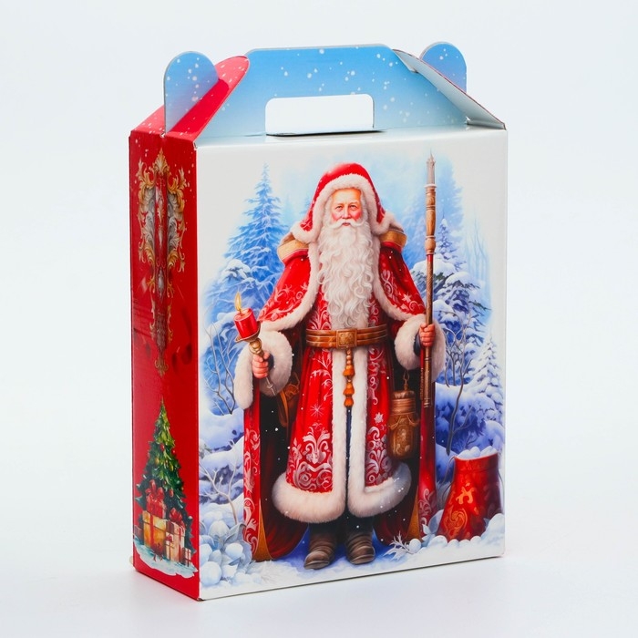 Коробка выполнена из качественных материалов, которые обеспечивают сохранность содержимого. Она имеет яркий и красочный дизайн, который отражает атмосферу Нового года.