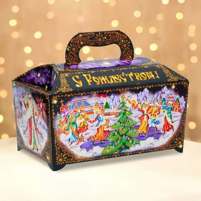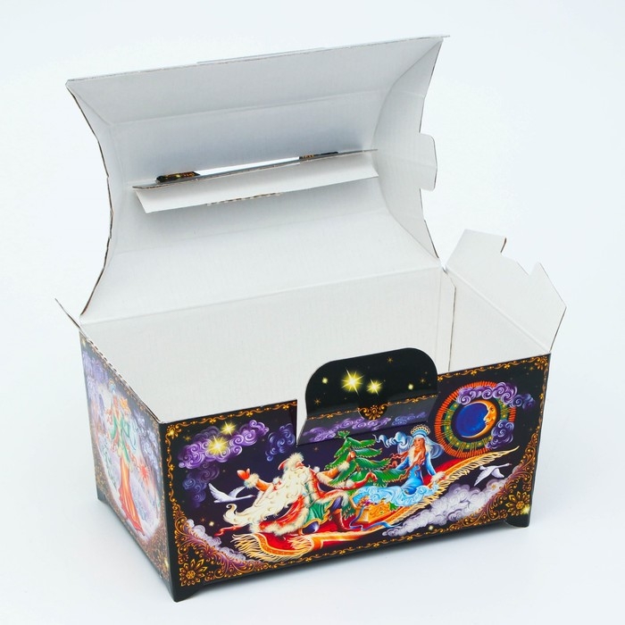 Коробка выполнена из качественных материалов, которые обеспечивают сохранность содержимого. Она имеет яркий и красочный дизайн, который отражает атмосферу Нового года.