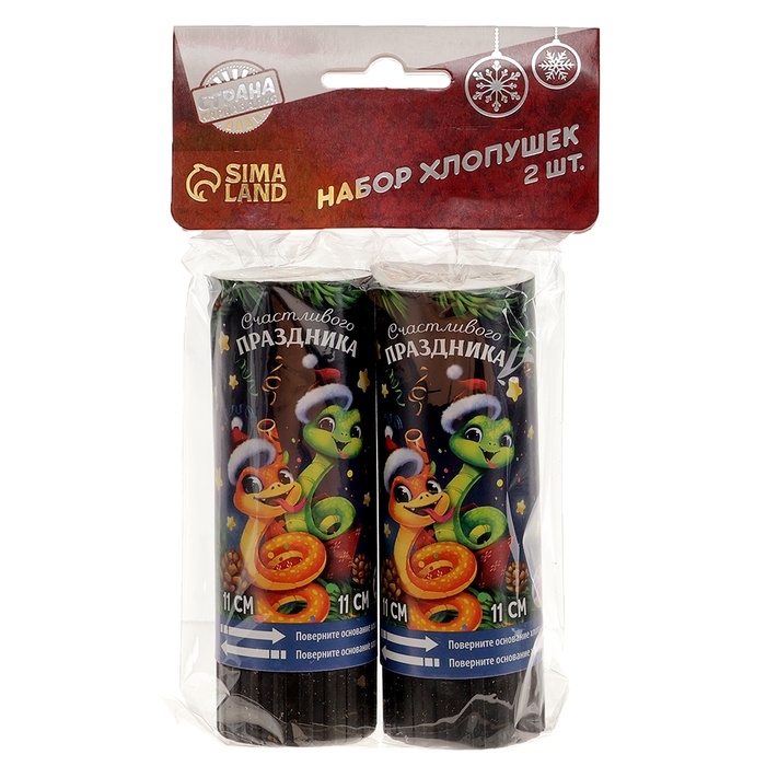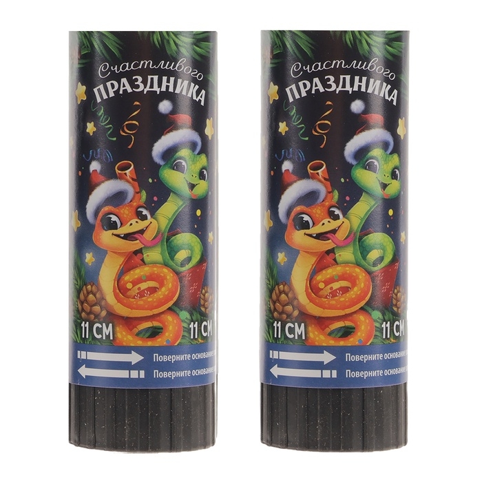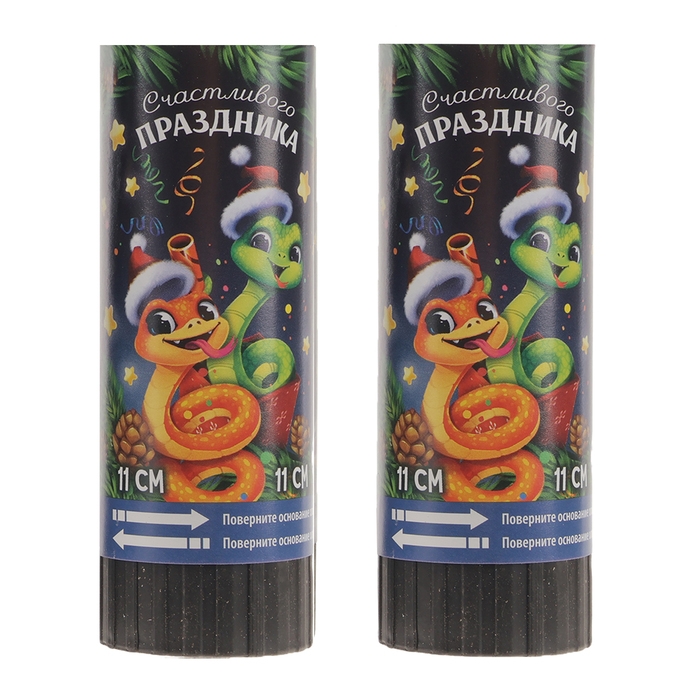Новогодний набор хлопушек пружинных 2 шт «Счастливого праздника» 11 см