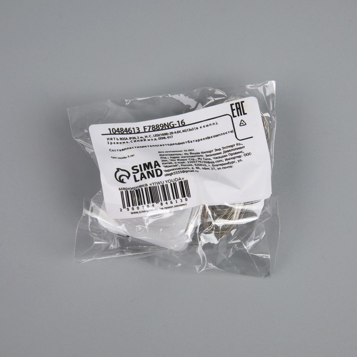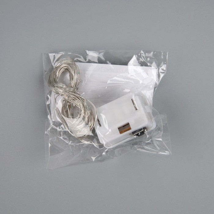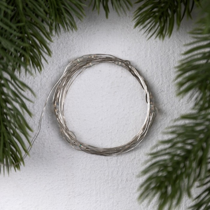 Гирлянда «Нить» 2 м роса. IP20, нить серебристая, 20 LED, 4.6 В, AG13x3 (в комплекте), 3 режима, свечение синее