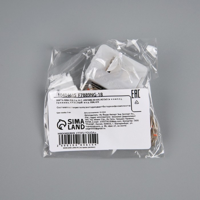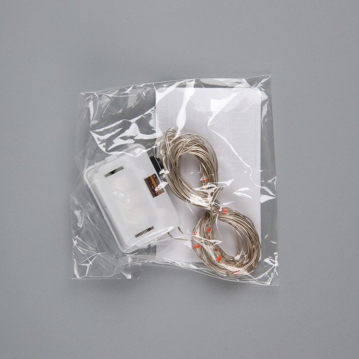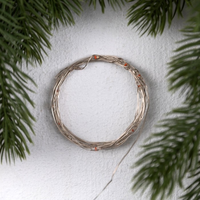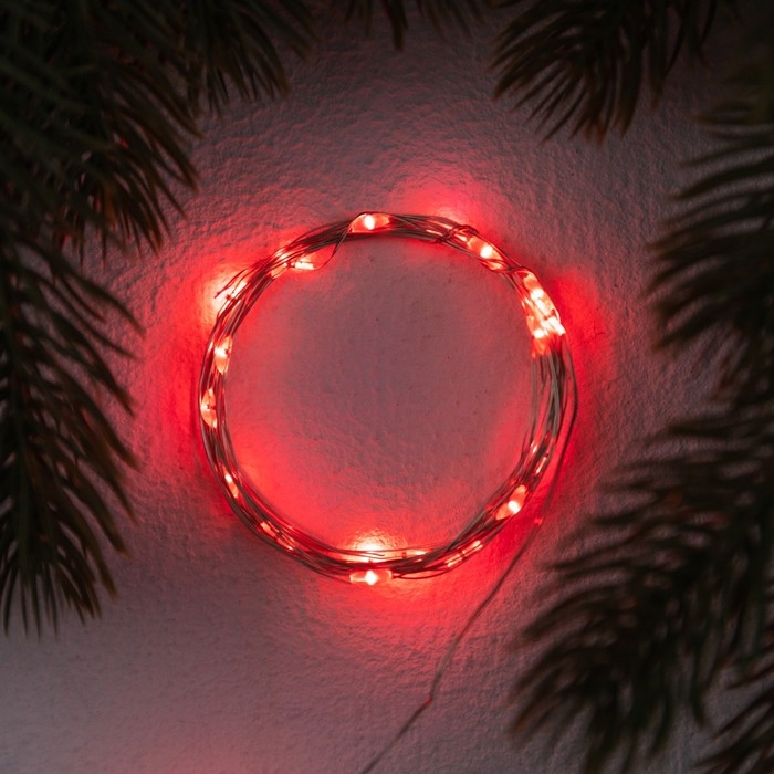Гирлянда «Нить» 2 м роса. IP20, нить серебристая, 20 LED, 4.6 В, AG13x3 (в комплекте), 3 режима, свечение красное