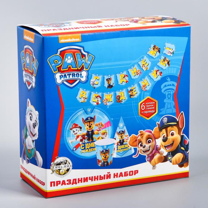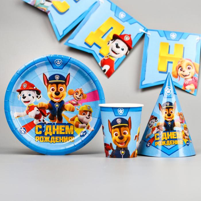 Набор бумажной посуды, на 6 персон "С днем рождения!", Щенячий патруль