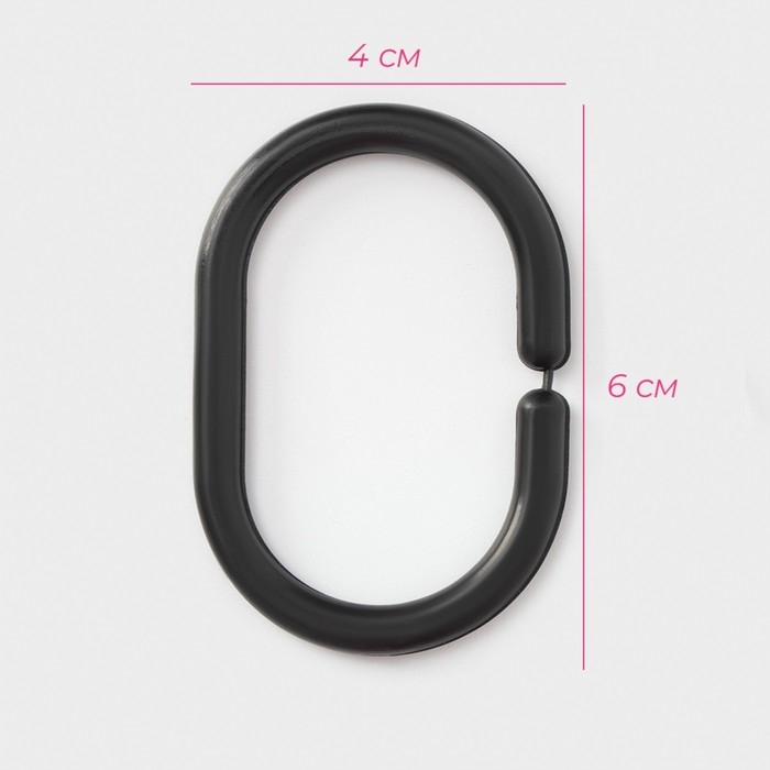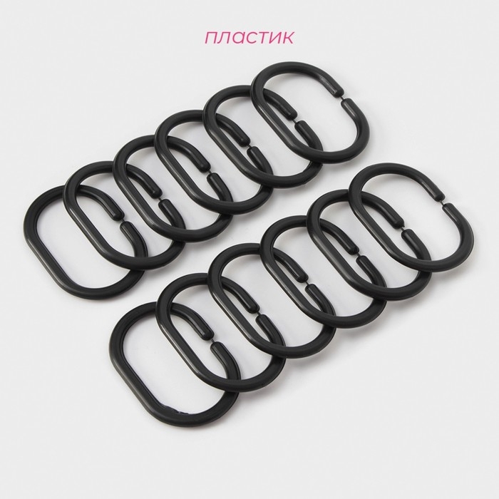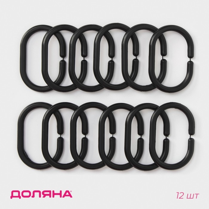 Кольца для штор Доляна, в ванную, пластик, 12 шт, 5,9×3,9 см, цвет чёрный