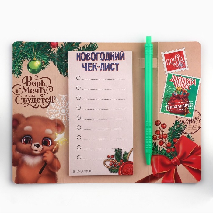 Подарочный набор новогодний «Новогодняя почта от Деда Мороза», планинг-стикеры 30 л, ручка пластик