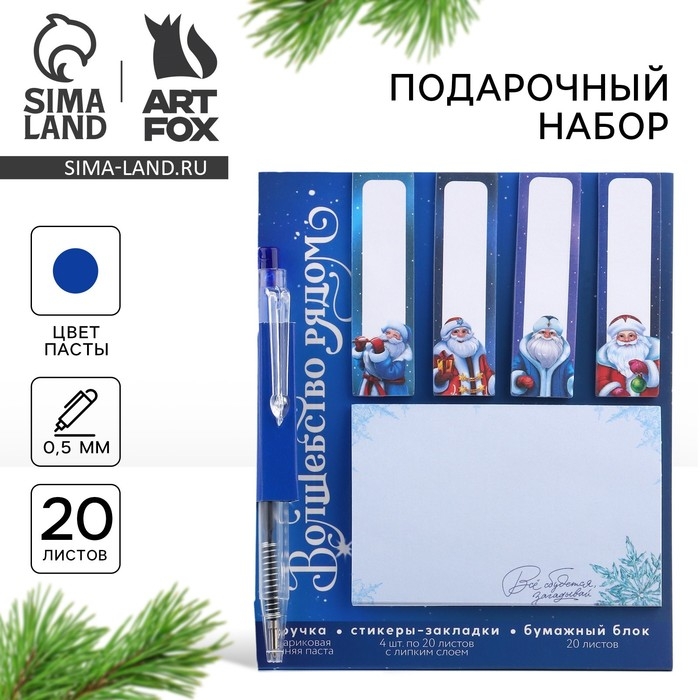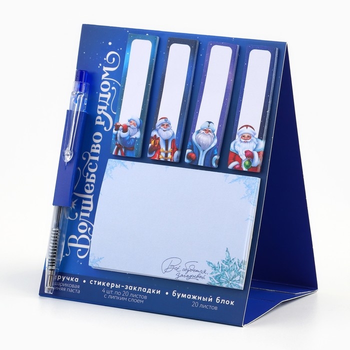 Подарочный набор новогодний, стикеры-закладки и ручка «Исполнения желаний», 20 л в блоке
