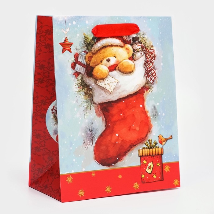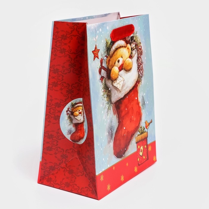 Новый год. Пакет подарочный, ламинированный, "Медвежонок",18 х 23 х 10 см.