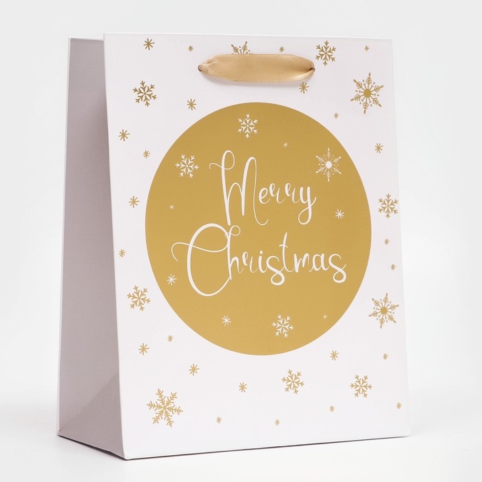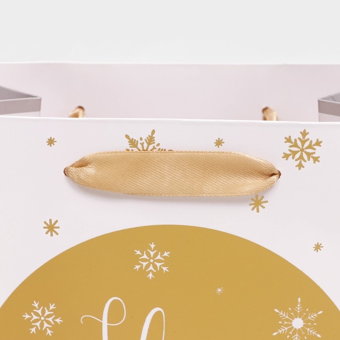 Новый год. Пакет подарочный, ламинированный, "Золотые снежинки",18 х 23 х 10 см.