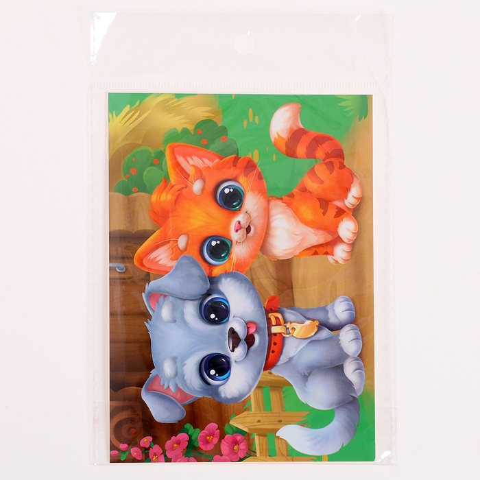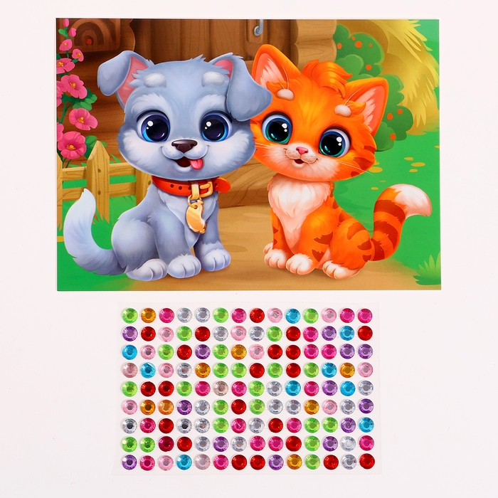 Аппликация стразами для детей «Щенок с Котенком», А6, набор для творчества