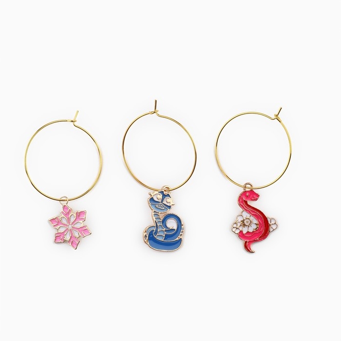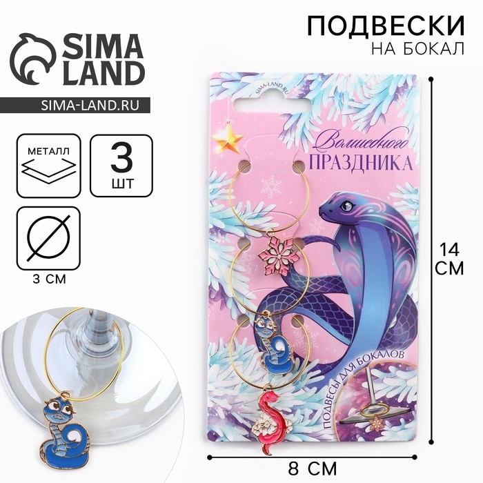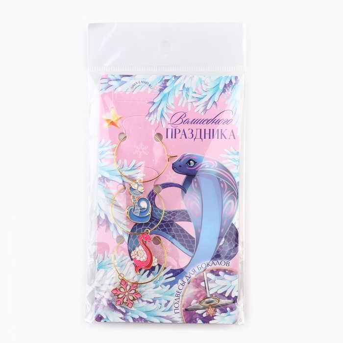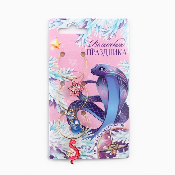Подвески на ножки бокала новогодние «Волшебного праздника» на Новый год, 3 шт,, диам, 3 см