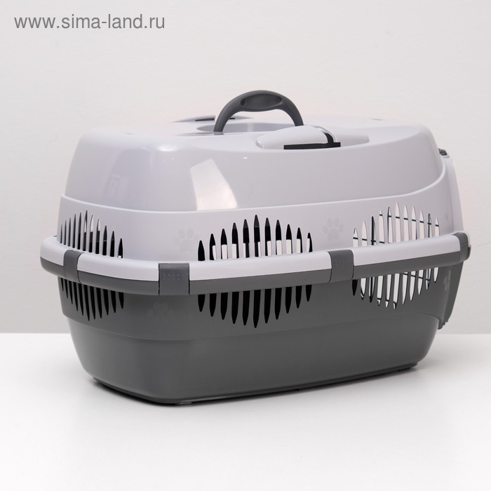 Переноска для животных с откидной прозрачной крышей 48х33х29,5 см, серая