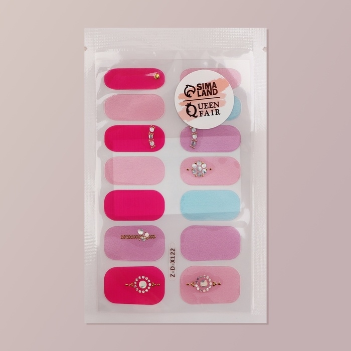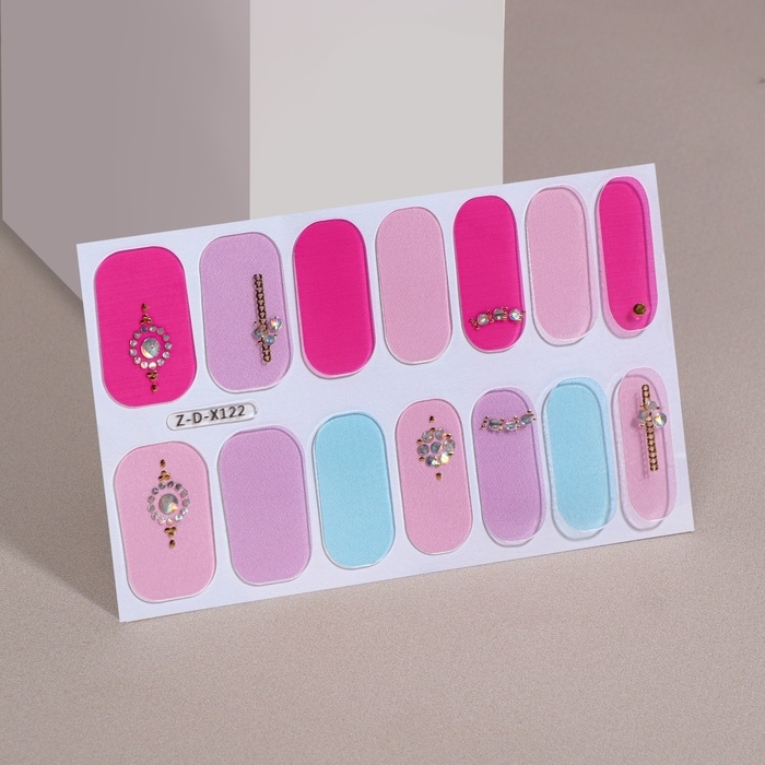 Лаковые полоски для маникюра, 14 шт, цвет розовый/сиреневый/голубой