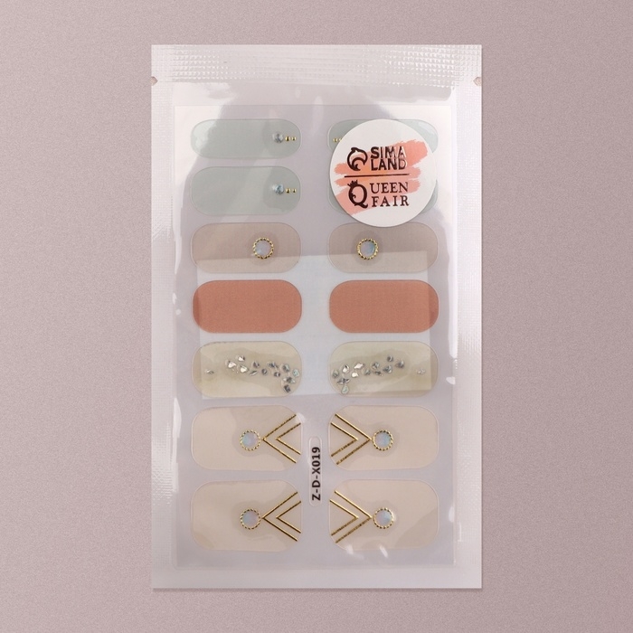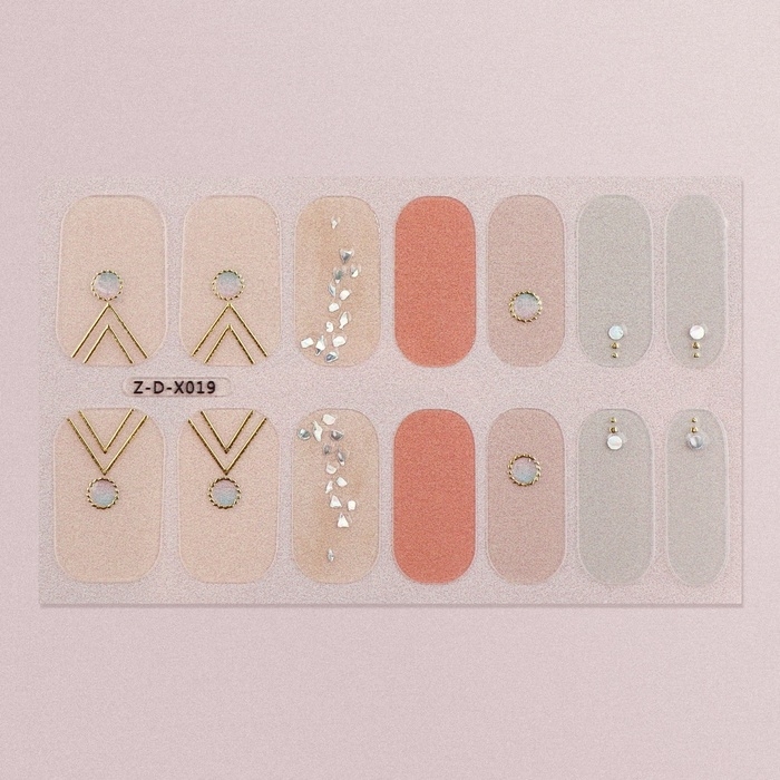 Лаковые полоски для маникюра, 14 шт, цвет бежевый/розовый/голубой