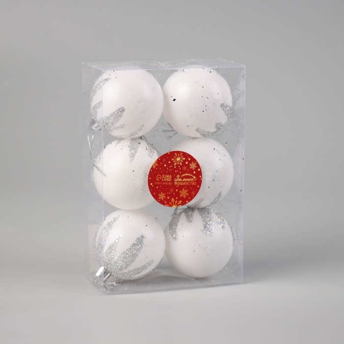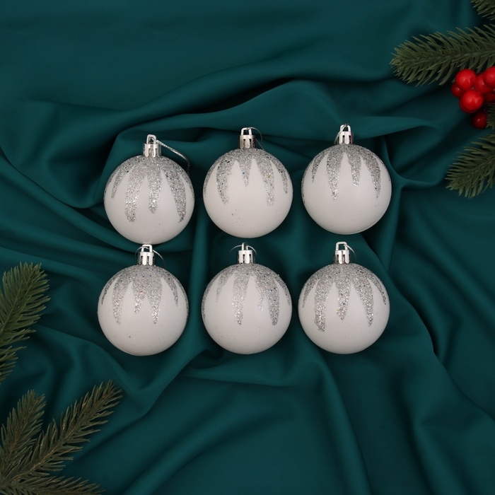 Набор шаров пластик d-6 см, 6 шт "Алойз" серебристо-белый