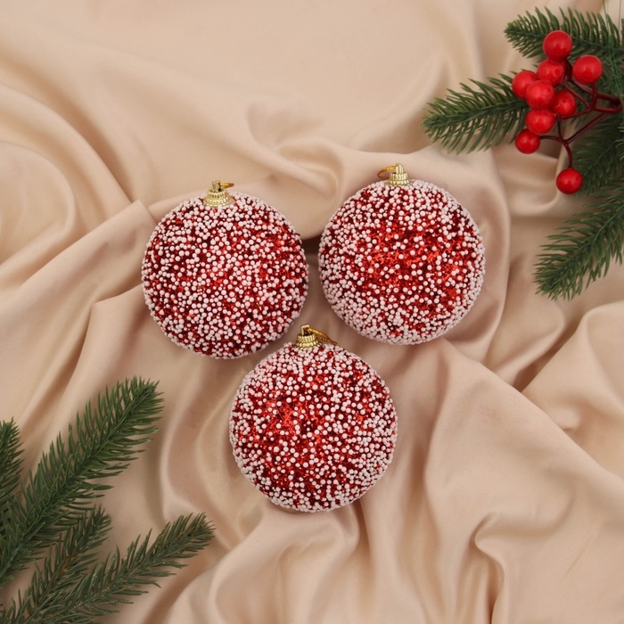 Набор шаров пластик d-8 см, 3 шт "Калеб" красный