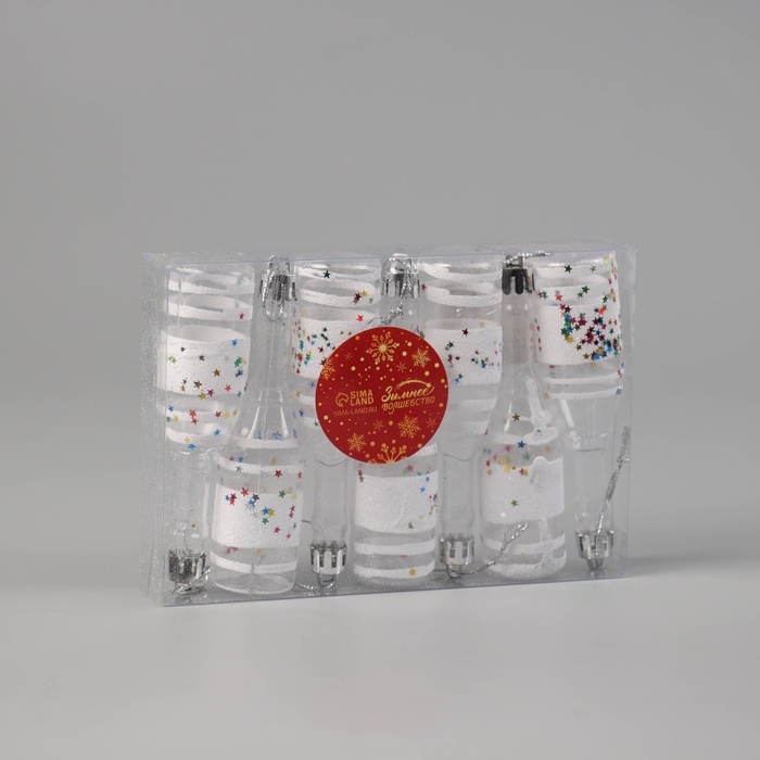 Украшение ёлочное "Бутылочка" (набор 6 шт) 11х3 см, прозрачно-белый