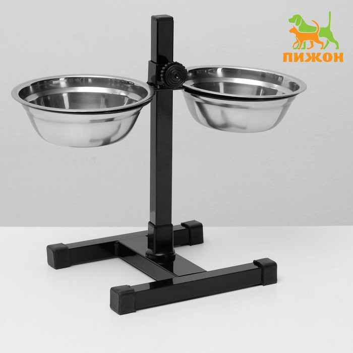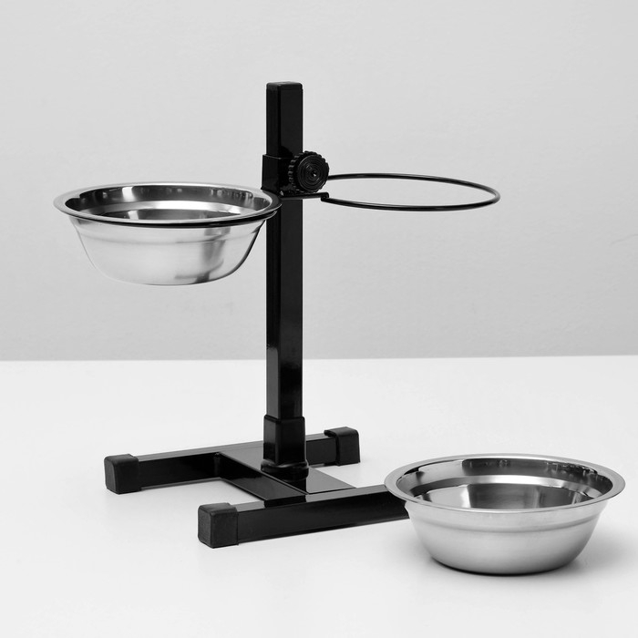 Подставка с мисками, 2 х 500 мл, высота 30 см, разборная, чёрная