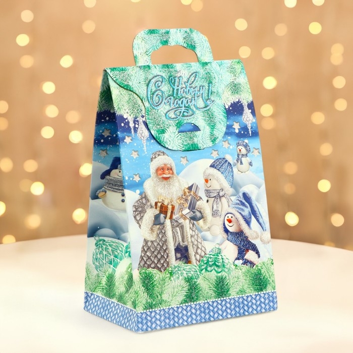 Новый год. Подарочная коробка новогодняя Сумочка мини "Краски зимы" 140 x 100 x 223 см.