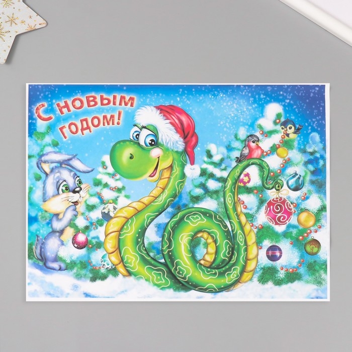 Новогодняя декупажная карта "Змея в шапке", плотность 45 г/м2, формат А4