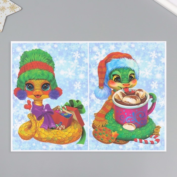 Новогодняя декупажная карта "Змеи милашки", плотность 45 г/м2, формат А4