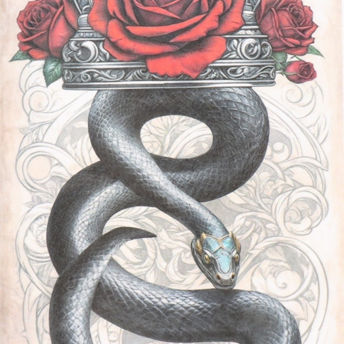 Новогодняя декупажная карта "Черная змея и роза", плотность 45 г/м2, формат А4