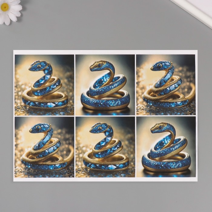 Новогодняя декупажная карта "Сапфировая змея", плотность 45 г/м2, формат А4