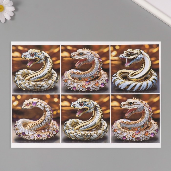 Новогодняя декупажная карта "Змея в драгоценностях", плотность 45 г/м2, формат А4